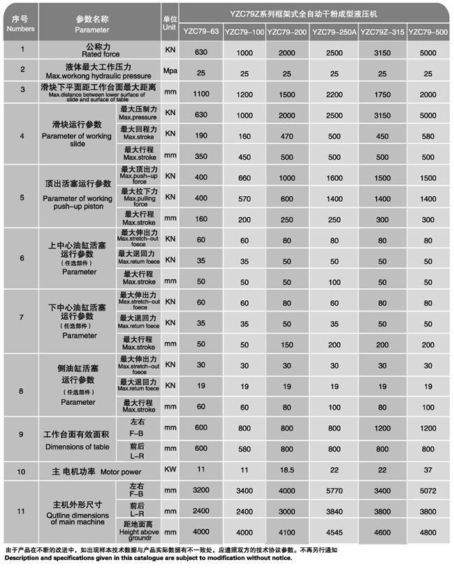 YZC79系列全自動粉末成型液壓機